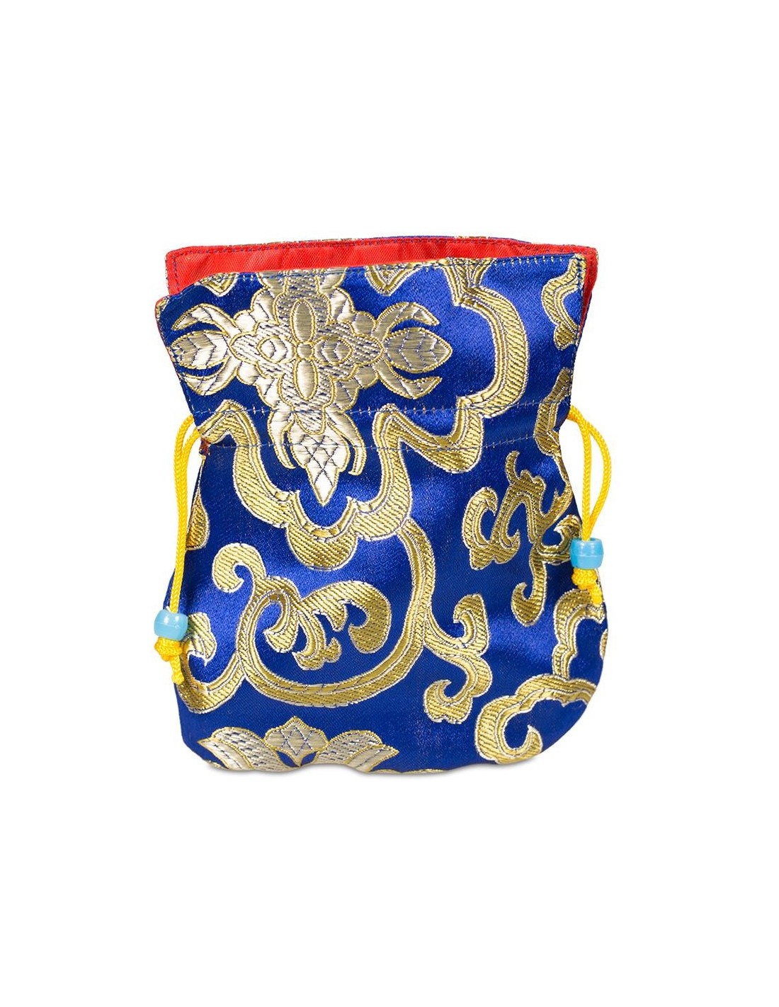 Wunderschönes kleines Täschchen zur Aufbewahrung der Mala. Das Täschchen ist aus einem glänzenden Seidenstoff gefertigt, das Innere ist mit rotem Stoff ausgekleidet.