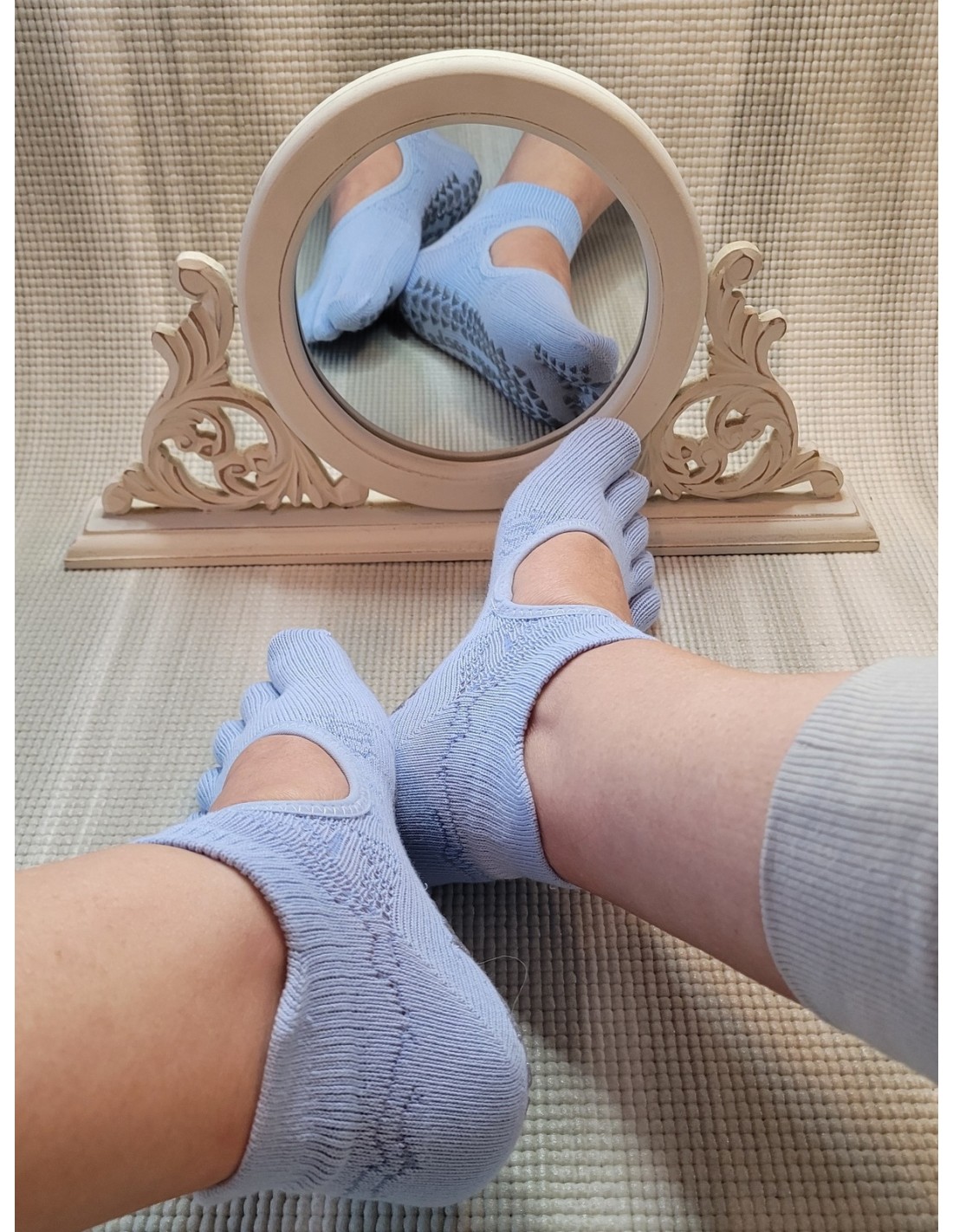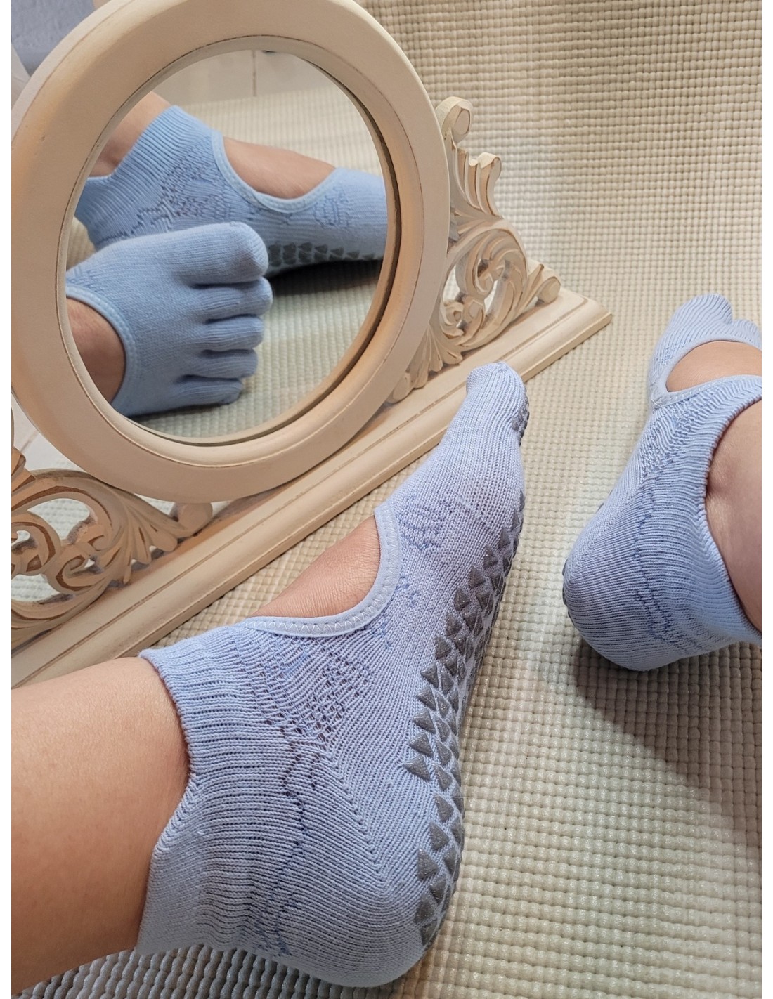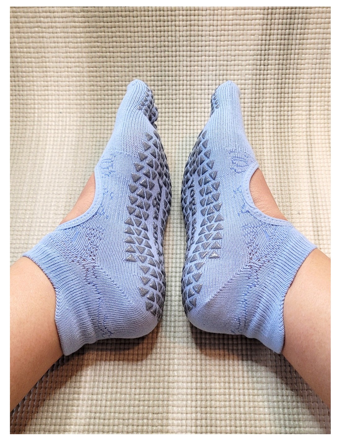 Les chaussettes antidérapantes "Lola" en Baby Blue offrent une combinaison équilibrée de confort, de stabilité et d'un toucher doux et lumineux qui apporte de la sérénité à votre pratique.